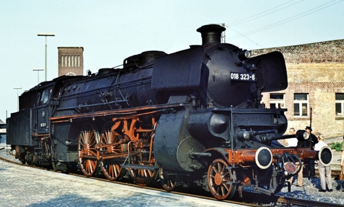 Bild oben: Die 18 323 präsentiert sich im September 1969 während einer Abschiedsfahrt am Düsseldorfer Hauptbahnhof. Copyright: Manfred Mülhens / Slg. Eisenbahnstiftung