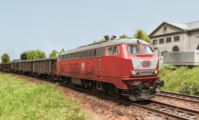Die ab 1966 (Vorserie) gebauten Maschinen waren zunächst als V 164 bezeichnet worden. Da die Serienlieferung erst nach Einführung des neuen Nummernsystems erfolgte, wurden Sie zur Baureihe 218. Insgesamt wurden 410 Maschinen abgeliefert (inkl. Vorserie) die teilweise noch heute im täglichen Einsatz bei der DB AG oder privaten EVU sind. Das authentisch "verschmutzte" Modell stellt den Zustand am Ende der 1990er Jahre nach.